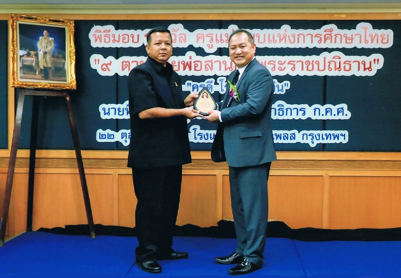 รับโล่รางวัลครูแม่แบบแห่งการศึกษาไทย จาก นายยศพล เวณุโกเศศ รองเลขาธิการ ก.ค.ศ.