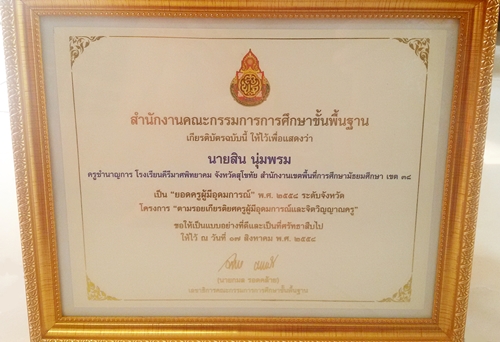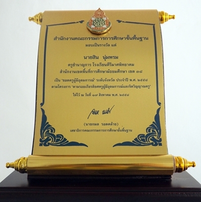 รับรางวัล ยอดครูผู้มีอุดมการณ์ ปี 2558